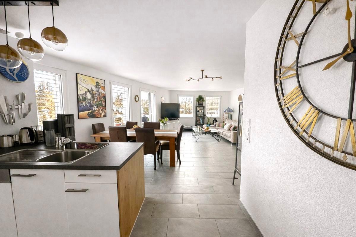 - Cuisine entièrement équipée avec îlot central, ouverte sur un séjour spacieux et lumineux
