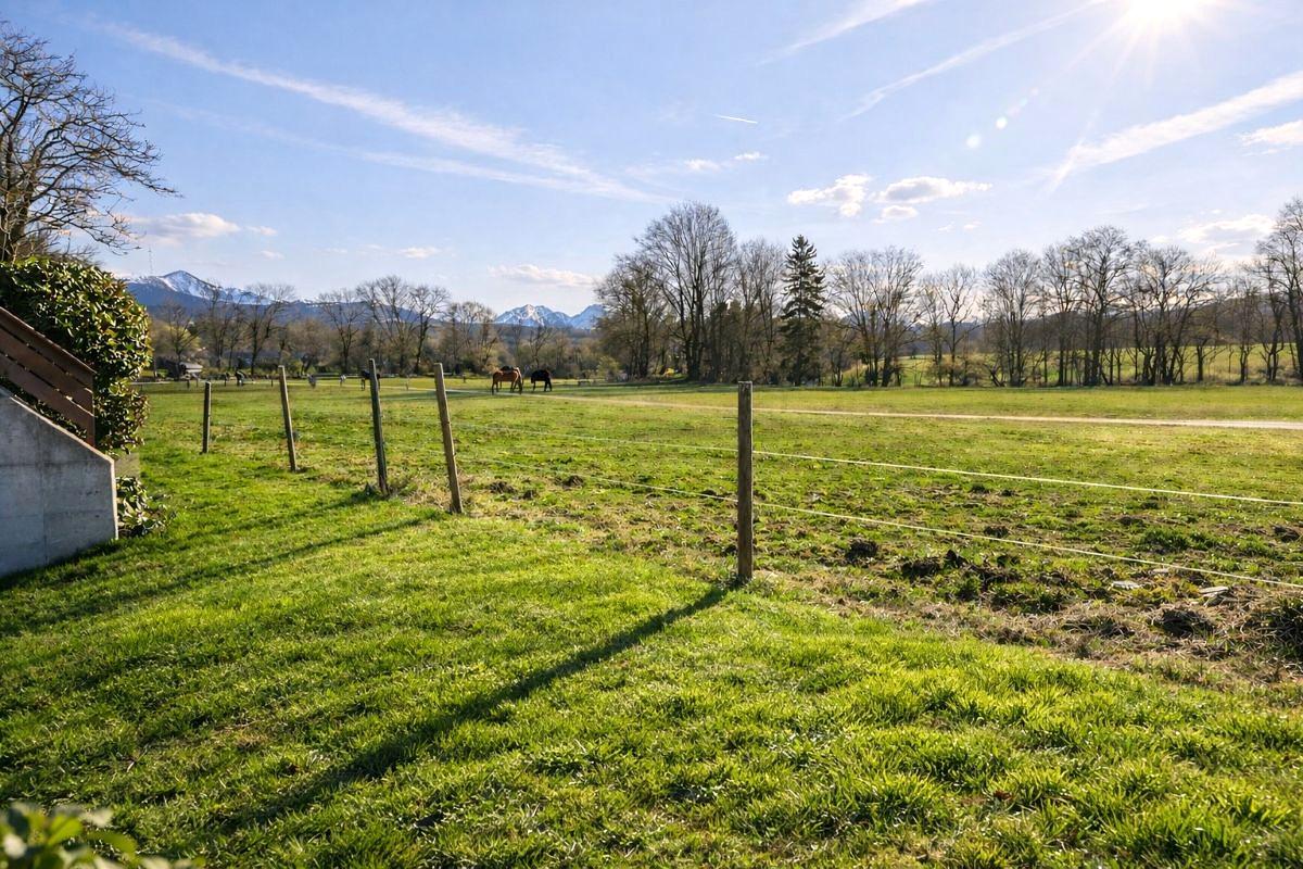 Baigné de lumière, l'appartement séduit par ses beaux volumes généreux et son balcon idéalement orienté, offrant une vue dégagée sur la campagne et les montagnes, avec pour seul vis-à-vis des prairies et des chevaux, garantissant un intimité absolue et une atmosphère bucolique particulièrement recherchée.